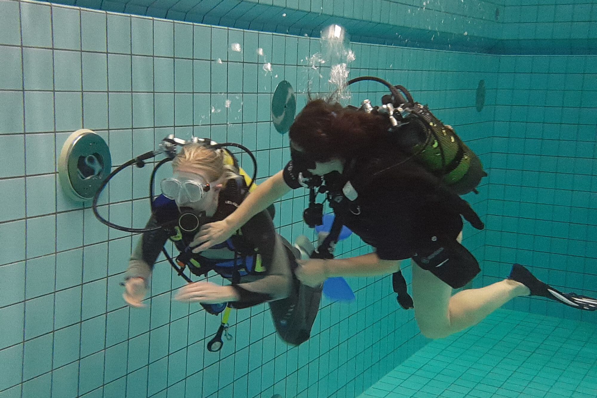 Alles beginnt bei uns mit einem Schnuppertauchen im Schwimmbad. Dabei gehst du zusammen mit einem unserer Ausbilder unter Wasser. Bei deinem ersten Tauchgang führen wir dich in die Unterwasserwelt und zeigen dir anhand der ersten Schritte die Faszination am Tauchen.